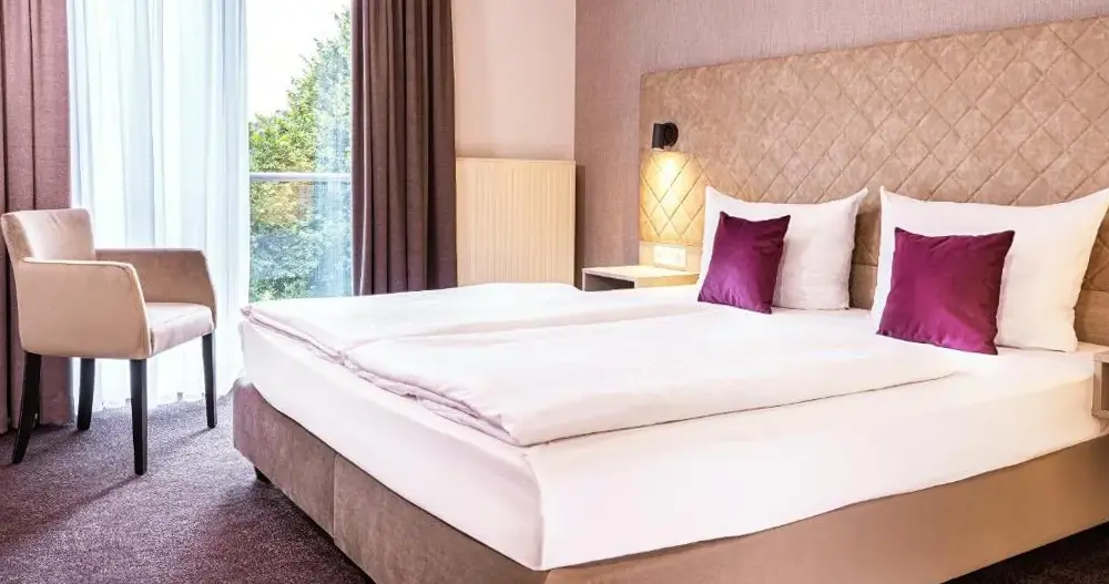 Das Victor's Residenz-Hotel Gummersbach liegt im Naturpark Bergisches Land in der Stadt Gummersbach, nur wenige Gehminuten vom Stadtzentrum entfernt. Das 4-Sterne-Hotel bietet geräumige Zimmer mit Flachbild-Sat-TV sowie kostenlosem Anrufservice zu Festnetzen und Mobilfunknetzen weltweit. Viele Zimmer verfügen über eine vollständige Küche. Gäste können regionale und internationale Gerichte im Victors Restaurant genießen oder bei schönem Wetter auf der Terrasse essen. Die Victors Bar lädt nach dem Abendessen zum geselligen Verweilen ein. Zu den nah gelegenen Sehenswürdigkeiten zählen das Anglerpark Koppelweide (6 km), Freizeitpark Bielstein (7 km) sowie die Fußgängerzone in Gummersbach (700 m). Kostenlose Parkplätze sind direkt vor dem Hotel vorhanden. Das Hotel wird positiv bewertet, insbesondere wegen des hervorragenden Frühstücks, der freundlichen Mitarbeiter und der großen, sauberen Zimmer.